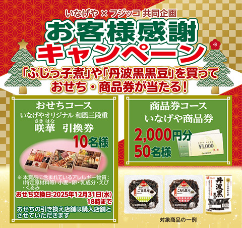 フジッコ株式会社 「いなげや・フジッコキャンペーン」係 - 当選発表