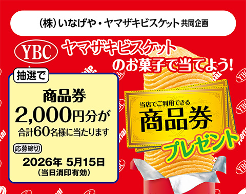 お預かりした個人情報につきましては、ヤマザキビスケット株式会社及びヤマザキビスケット株式会社が委託した市川甚商事株式会社が適正に管理し、当キャンペーンの抽選及び賞品発送、本件に関する諸連絡に利用するほか、商品やサービスの参考とするために個人を特定しない統計情報の形で利用させていただきます。